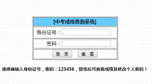 請(qǐng)準(zhǔn)確輸入身份證號(hào),密碼:123456,登錄后可查看成績及修改個(gè)人密碼!